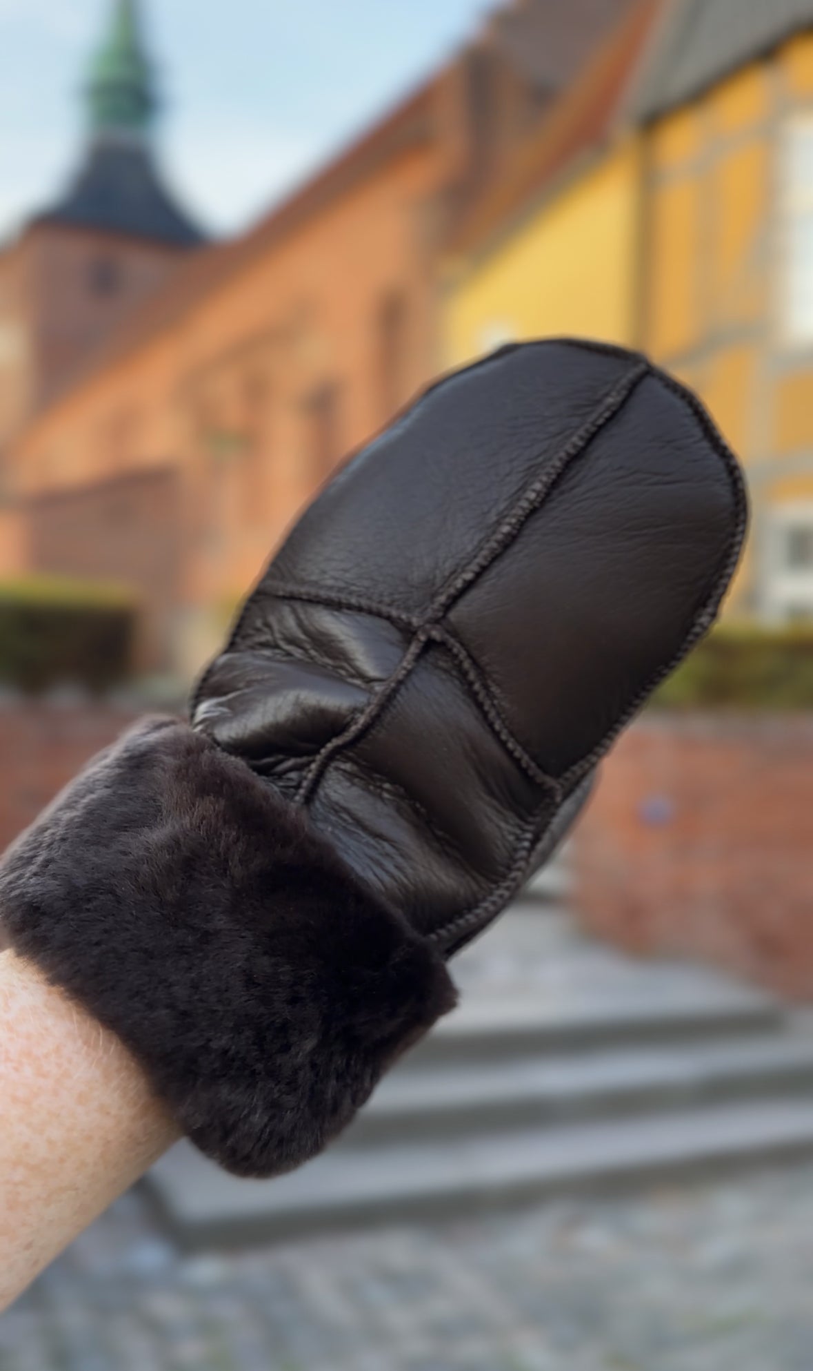 En skøn luffe i læder og tykt lammefoer, som varmer hele vinteren. Ønsker du varme længere op ad håndleddet, så kan uldforet bukkes op. Findes i tre størrelser.
