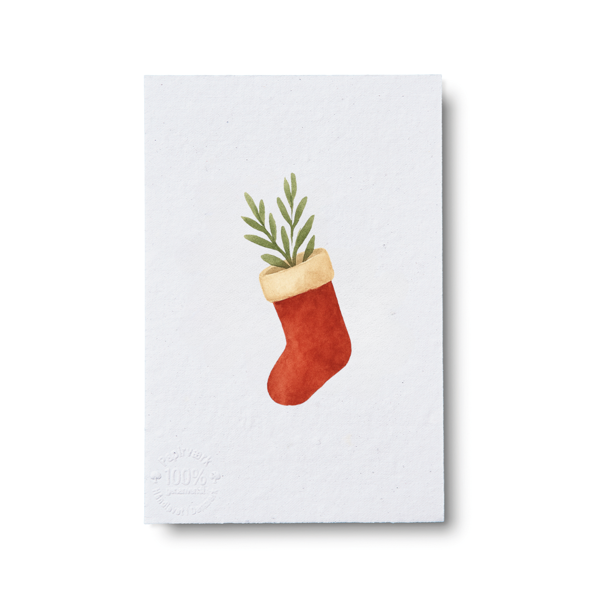 Fint julekort i A7 størrelse med en enkelt side. Motivet er en klassisk julesok.