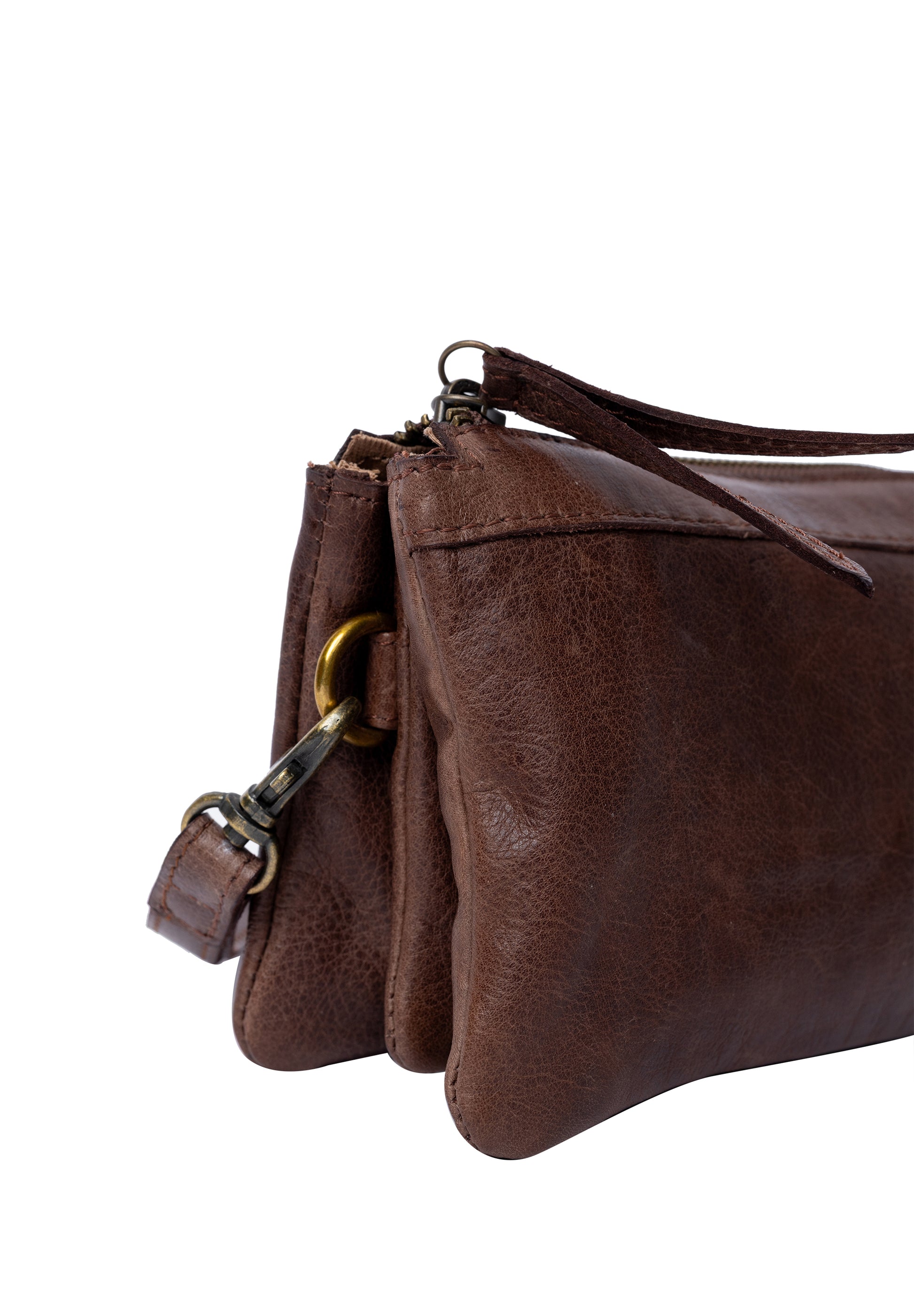 Lisa er 2-i-1, for her får du både en clutch og en lille skuldertaske. Den indeholder flere små rum, og kan have både mønter, kort, telefon og lidt ekstra. Her i den klassiske cognacfarvet læder.