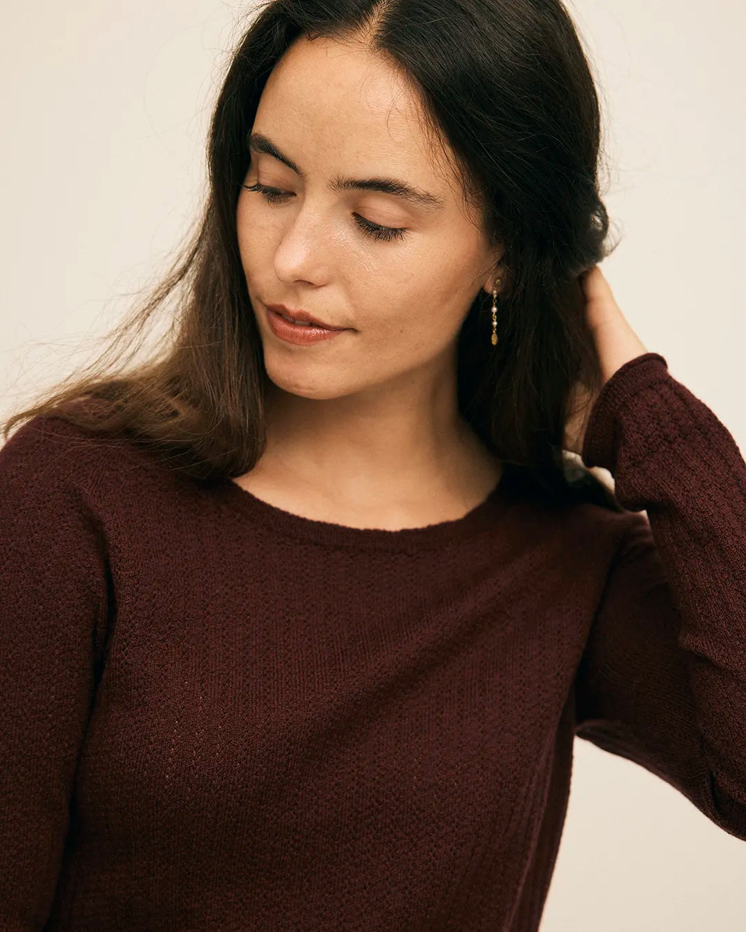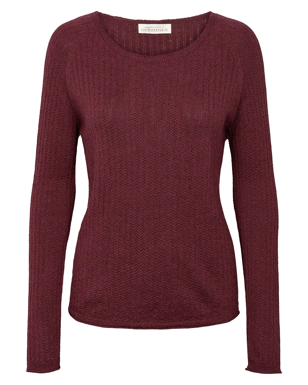 Pamina fra Gorridsen Design er super blød, fin og feminin med smukt hulmønster. Den er strikket i 100% merinould. Modellen har et klassisk, enkelt udtryk og og tætsiddende pasform.