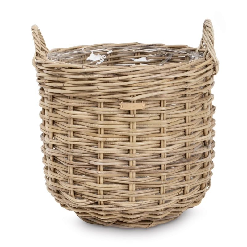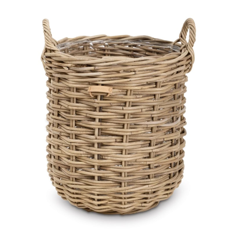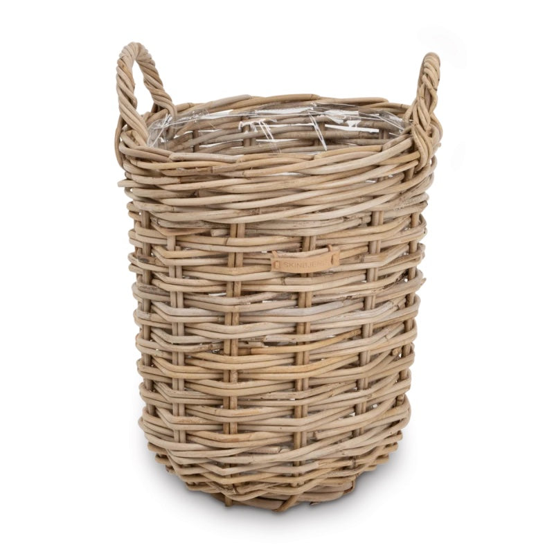 Fin plantekurv med rund bund, som kan bruges til større planter eller træer. Kan bruges både inde- og udendørs. Kurven er foret med tyk plastik, som holder godt. Ved indendørs brug er det en god idé med underskål.
