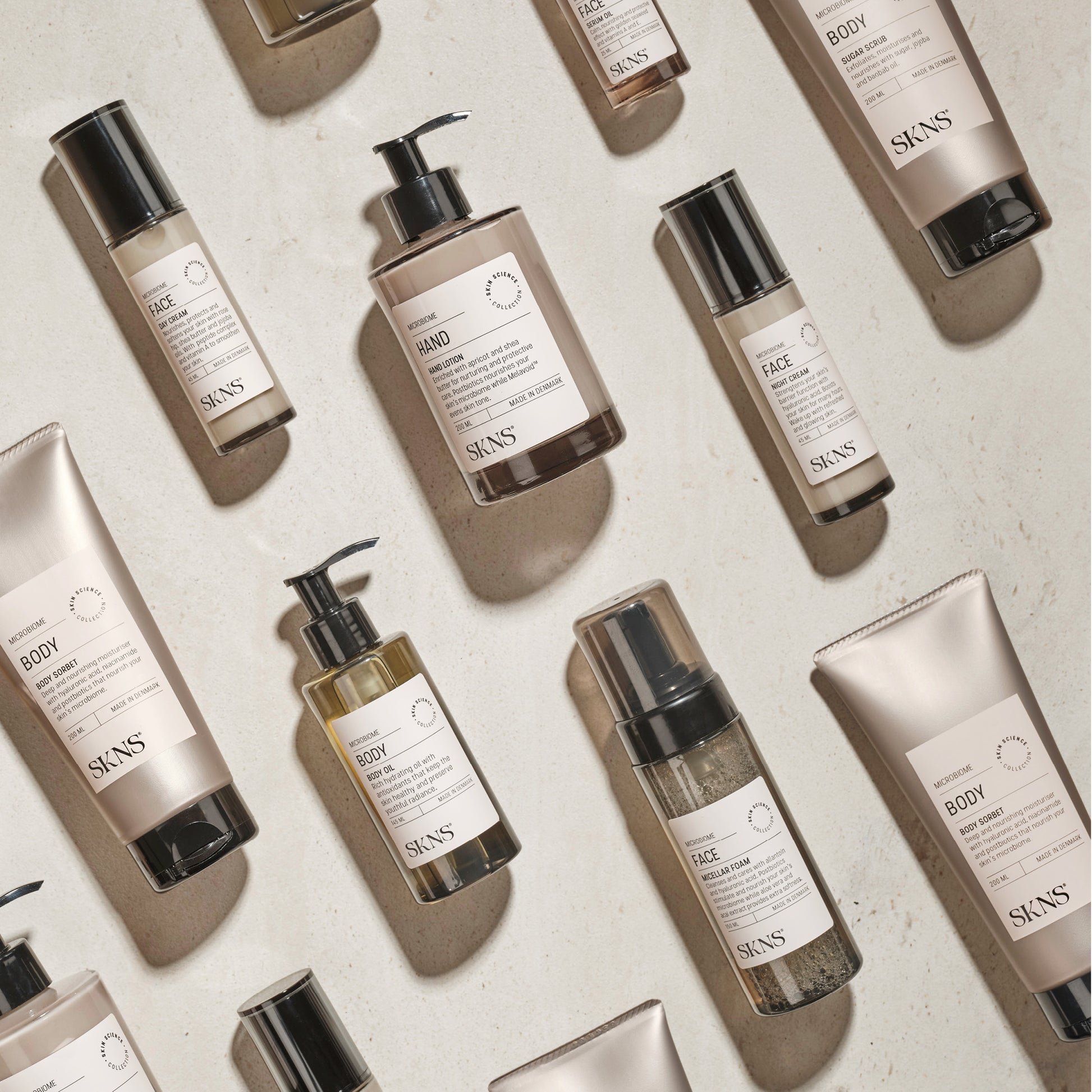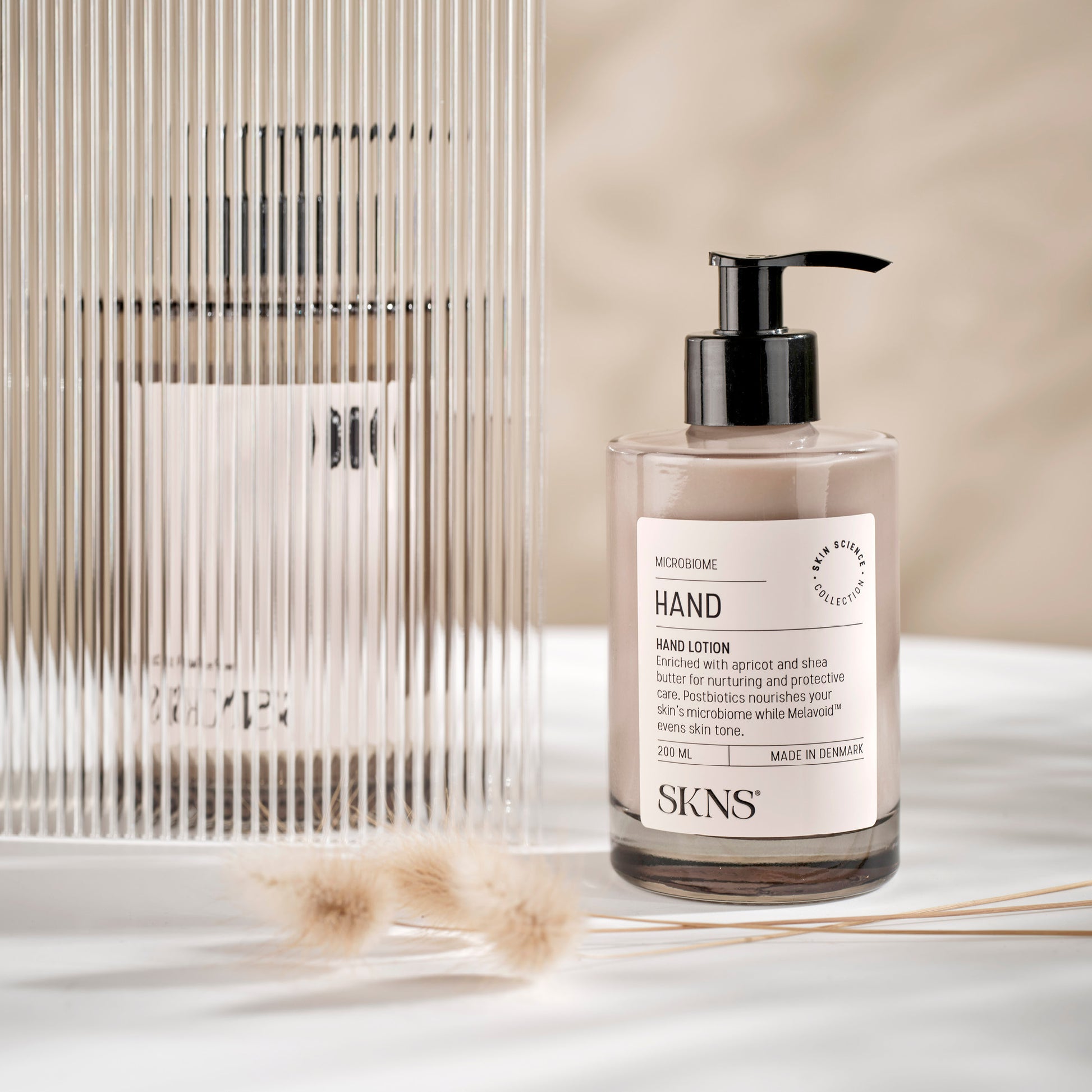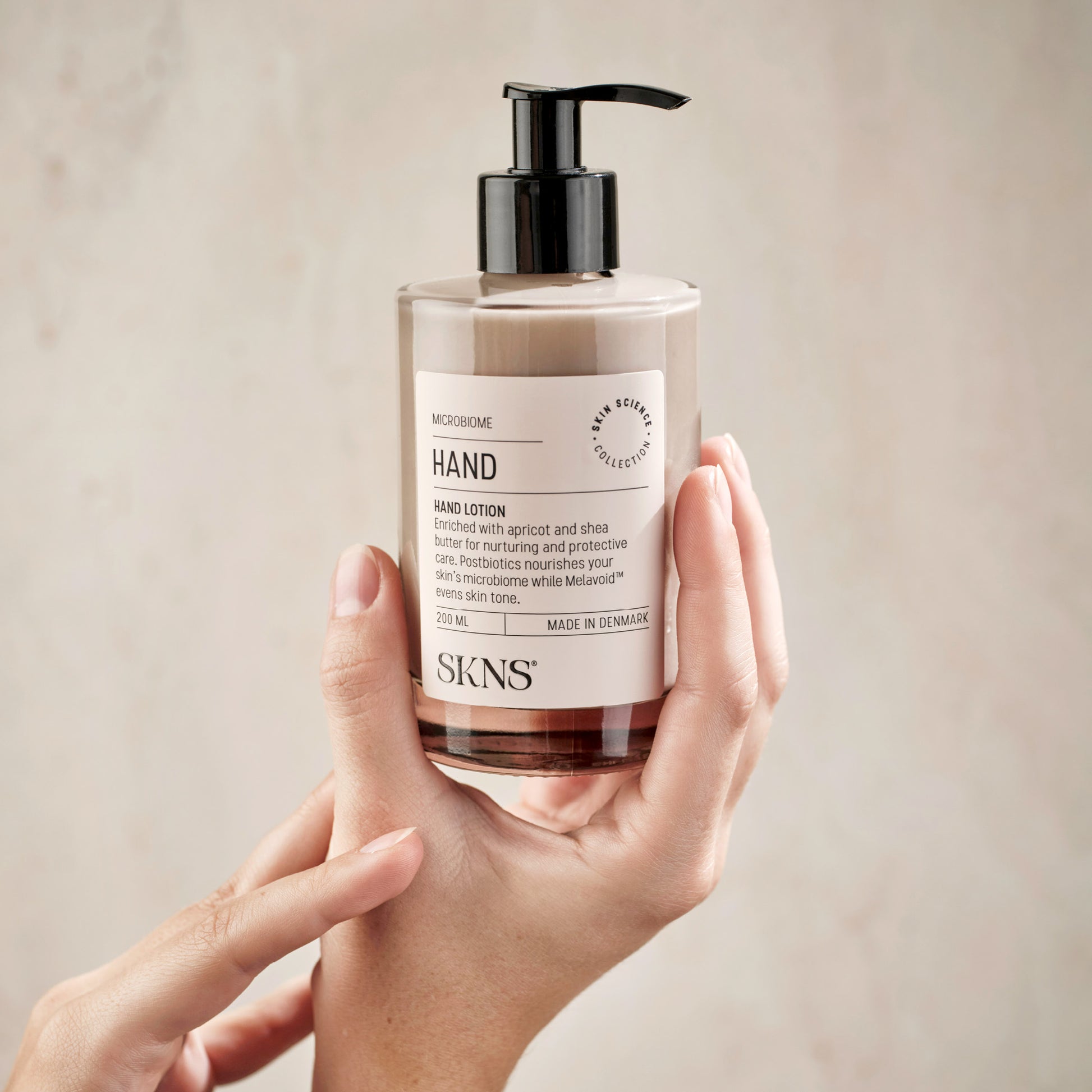 SKNS Hand Lotion indeholder postbiotika fra mælkesyrebakterier, der hjælper med at fremme de sunde bakterier på huden og nedbryde de usunde bakterier. Dette får huden i balance og får den til at fremstå med glød og udstråling.