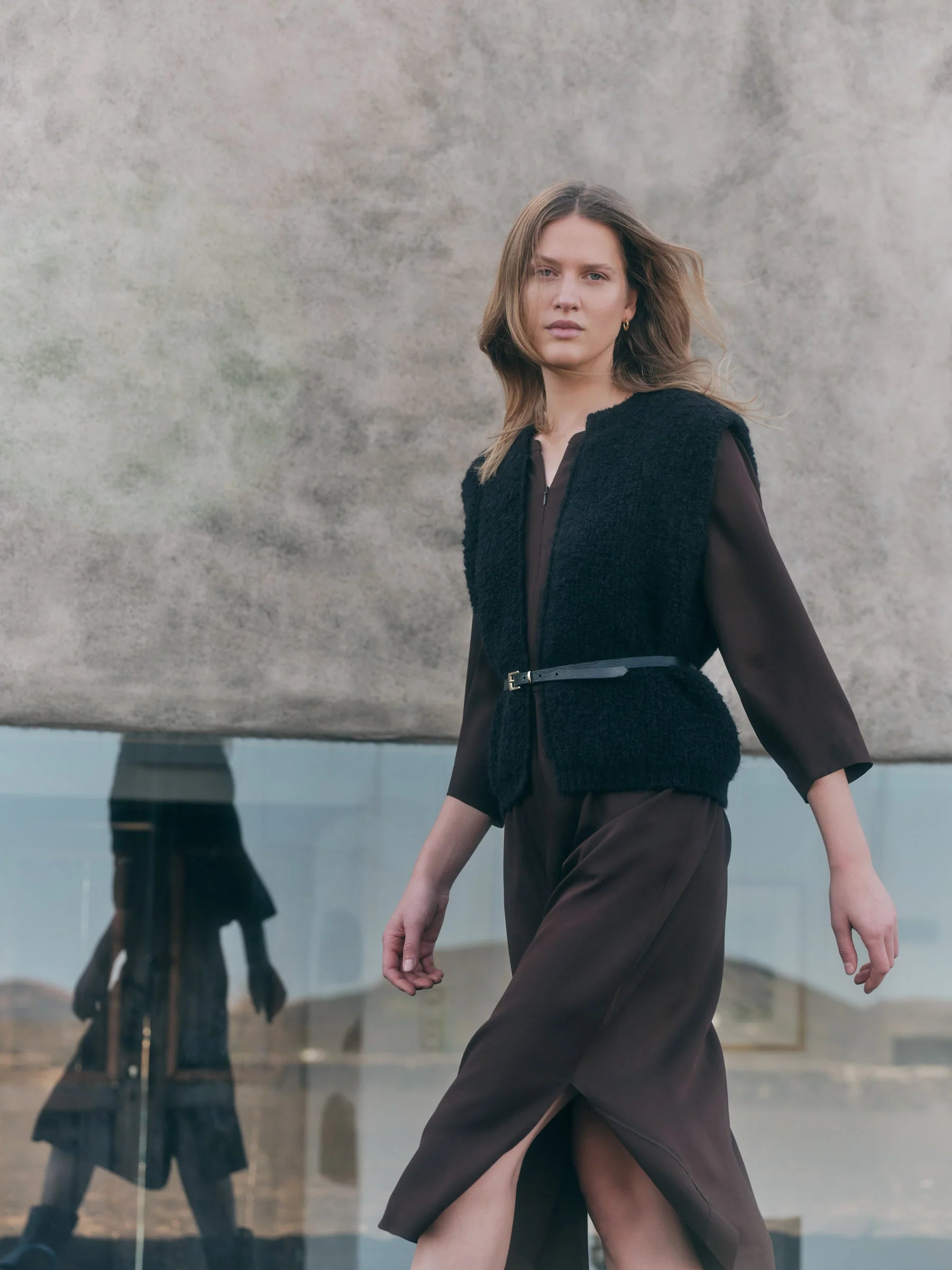 En skøn efterårsnyhed fra Lanius: en blød vest i alpakauld og økologisk bomuld, som er fin over både skjorter og kjole. Den har en skøn tyngde, og er fast i kvaliteten.